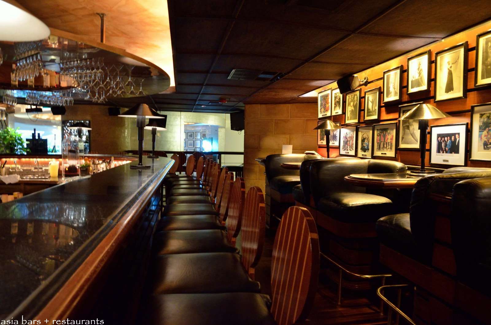 A luxurious combination of rich timber, black leather and granite exemplifies a classic, sophisticated bar aesthetic.