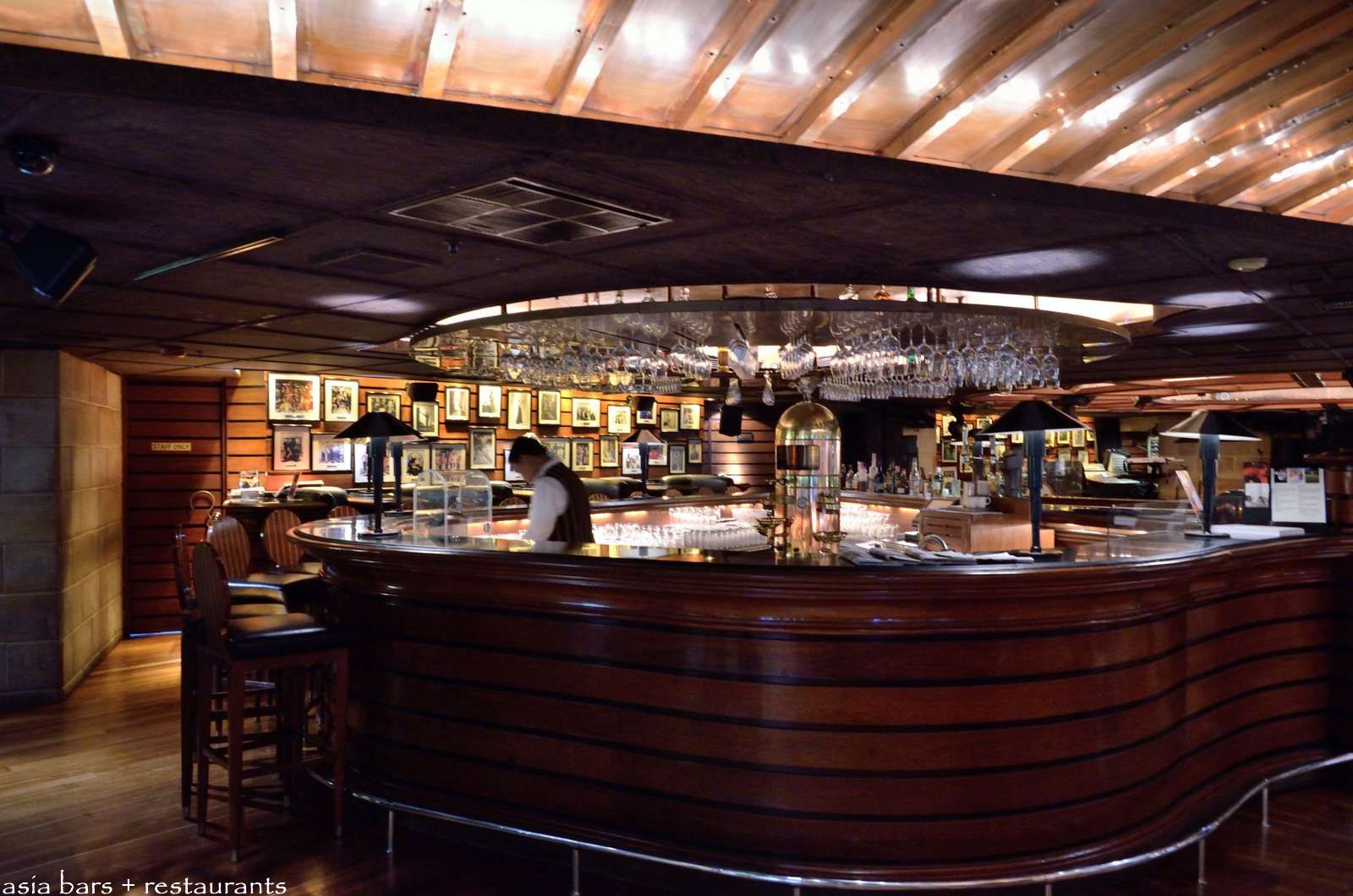 Located on the lower lobby level, Spasso exudes a warm, welcoming vibe with decor featuring a generous deployment of natural timbers, black and red leather upholstery, subdued lighting and spacious layout. A central colonnade- with its stunning copper-sheathed, vaulted ceiling- separates the open restaurant dining area from the bar and dance floor. Spasso boasts two circular bars- at the front of the room is the main cocktail bar- while a second bar at the rear of the room services the circular dance floor patrons later in the evenings.