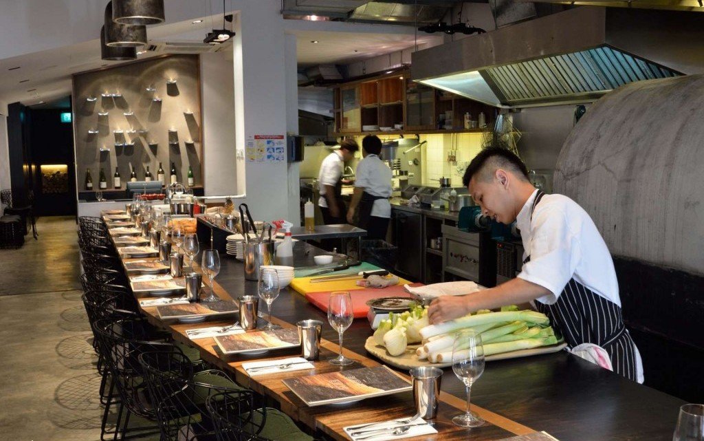 Guests enjoy an engrossing proximity to the chefs’ workplace.