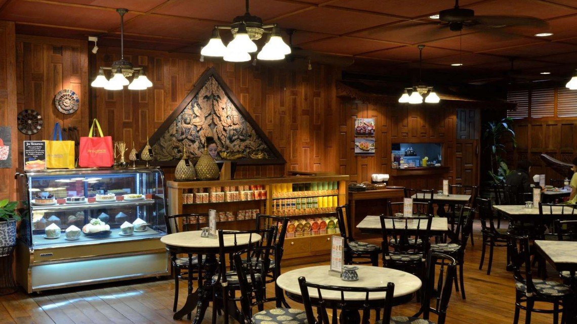 Charming cafe serving authentic Thai cuisine at Jim Thompson Thai Silk flagship store in Bangkok