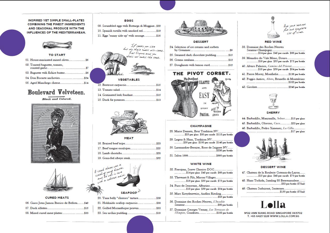 Generating considerable buzz among gastronomy circles both in Singapore and internationally since its inception just over a year ago (September 2012), Lolla continues to delight a steady clientele of discerning diners with its innovative concept of small plate dining. Occupying two levels of a restored heritage shophouse in the recently revitalised Ann Siang Hill dining and nightlife precinct of Singapore’s Chinatown, the concept for Lolla evolved from a gourmet supper club known as Lolla’s Secret Supper- with a group of six co-founders sharing a passion of fine food and wines. Embracing a produce-forward culinary concept that focuses on a simple and uncomplicated cooking style- albeit with finely executed skills- combining with the best available, seasonally fresh ingredients- to create an enticing menu of delectable small-plates dishes- ideal for sharing in a lively, sociable atmosphere.