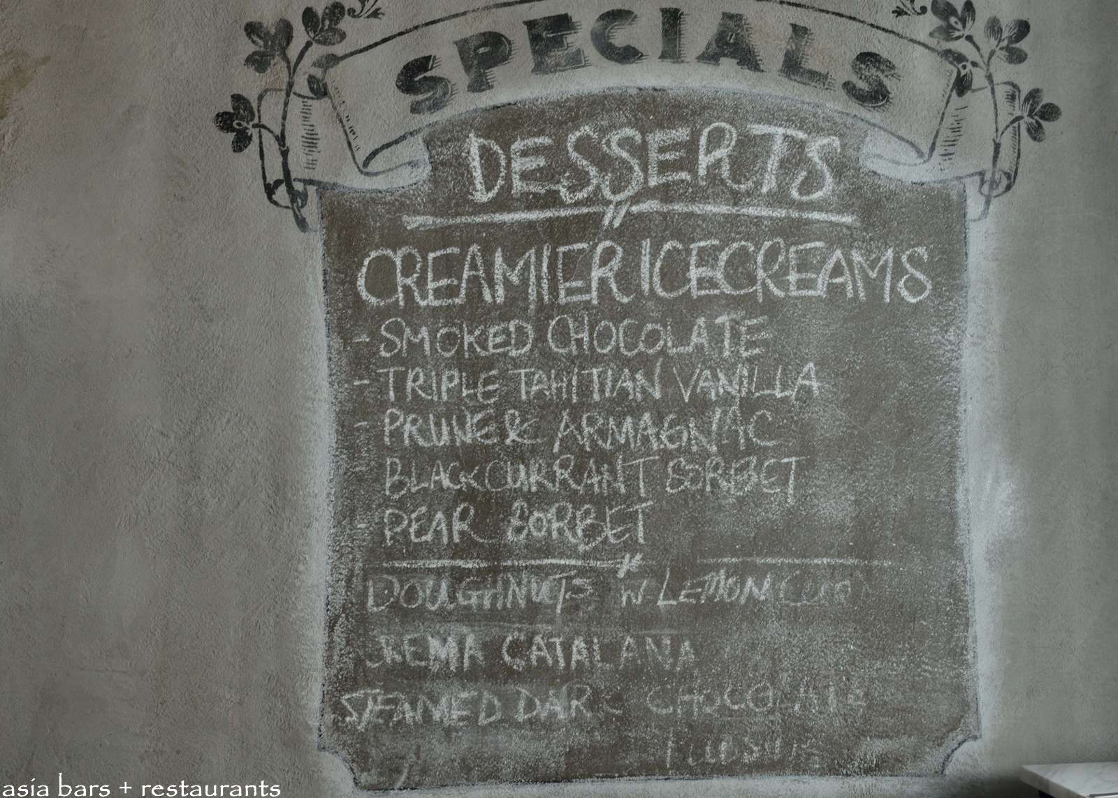 Daily dessert specials are chalked up directly onto “blackboard” area of the raw concrete screed finished wall.