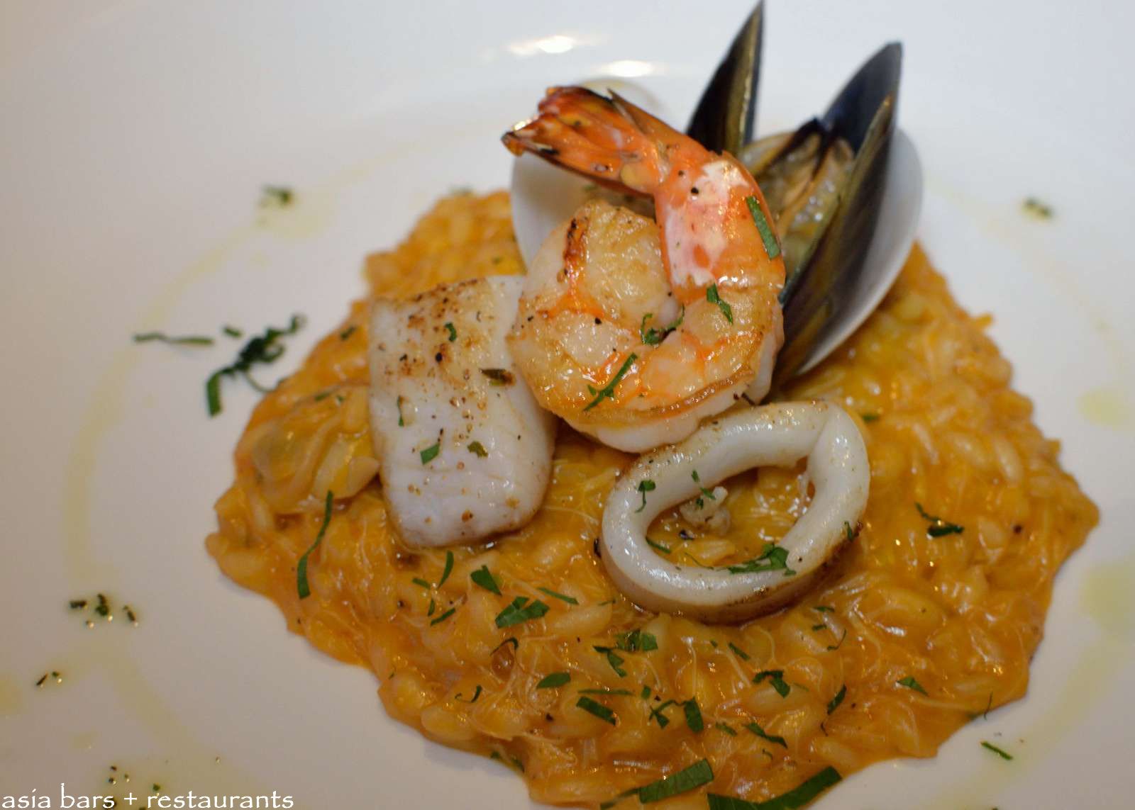 Risotto allo Scoglio– Sea Rock Style Risotto with Langoustine, Crab, Mussels, Clams, Tomato and Parsley.