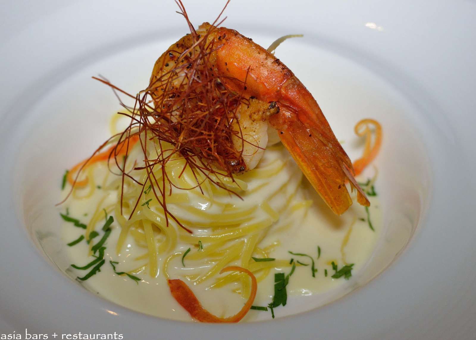 Tagliolini al Limone- Homemade Tagliolini with Amalfi’s Lemon Sauce and Lightly Spiced Prawns.
