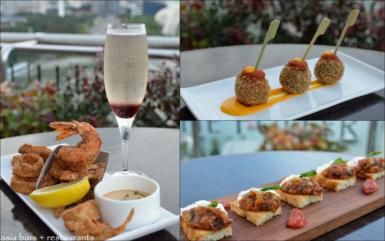 (L) Heritage cocktail- Martini Bianco or Rosso, topped up with Prosecco, flavoured with Amarena Cherry; and Frittino- Squid, Prawn And Whitebait with Smoked Pepper Sauce