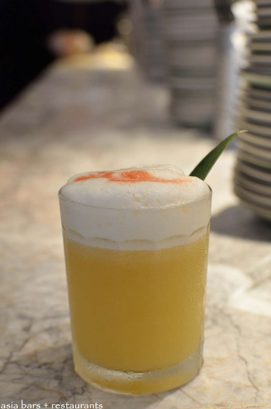 Saigon Sour- Beam Black, pineapple juice, lime juice, agave nectar syrup, egg white. (Signature cocktail)