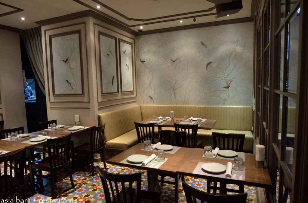 The attractive interior decor features a comforting palette of pastel colours, blending harmoniously with the colourful Mediterranean-style tiled floor and sleek bronze bar counter.