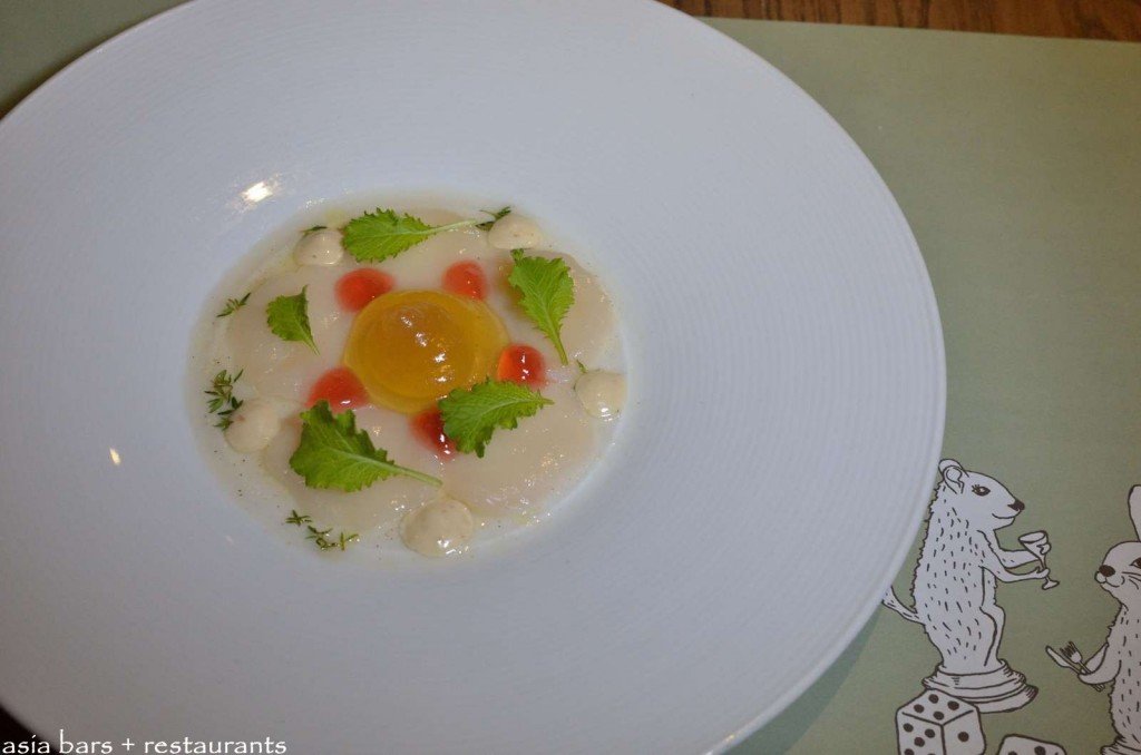 Diver SCALLOP CRUDO- with Hon-Dashi & grated horseradish.