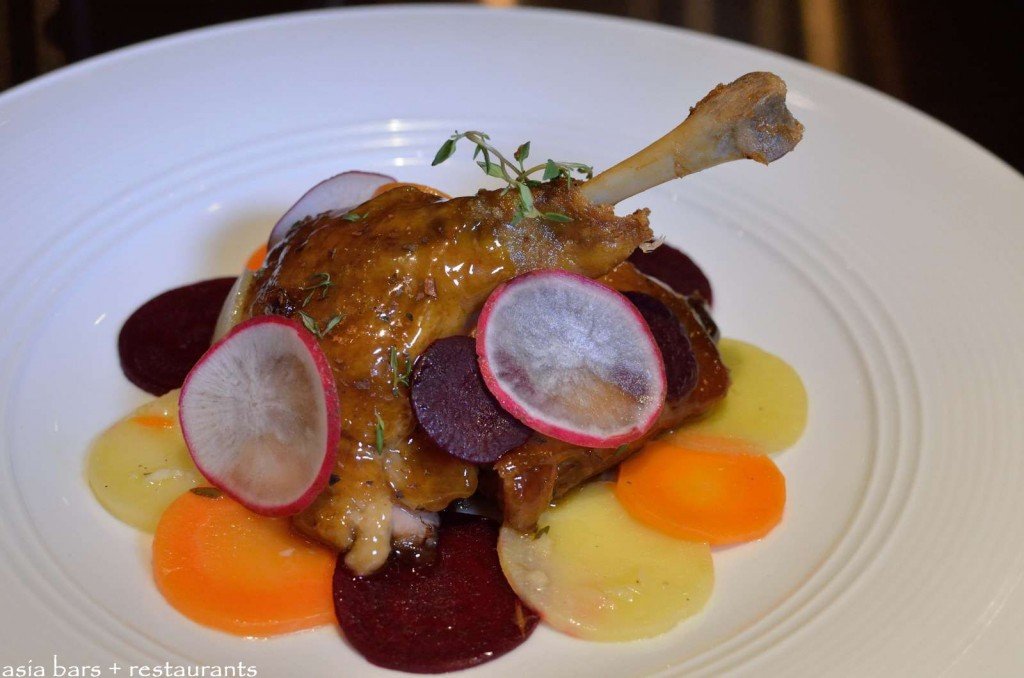 Duck leg CONFIT- with tamarind glaze, underground-edibles & dried chili.