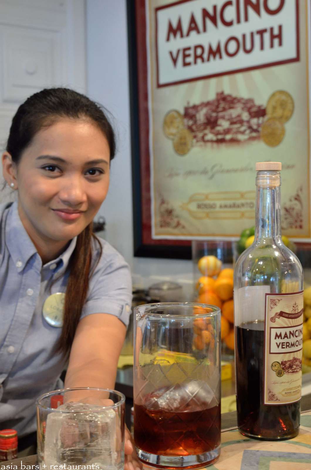 Preparing the sublime NEGRONI- one of the standout Las Flores classic cocktails.