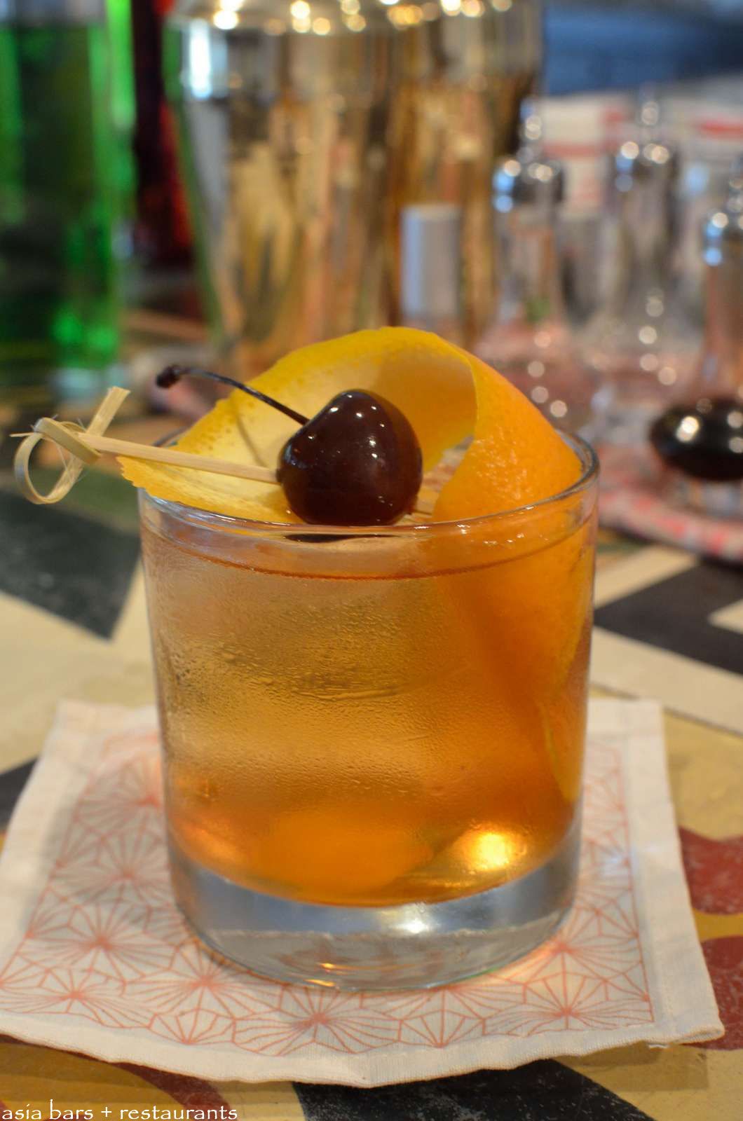 OLD FASHIONED- Bourbon Whiskey, Bitters, Home Made-Brandied Cherries, Orange peel.