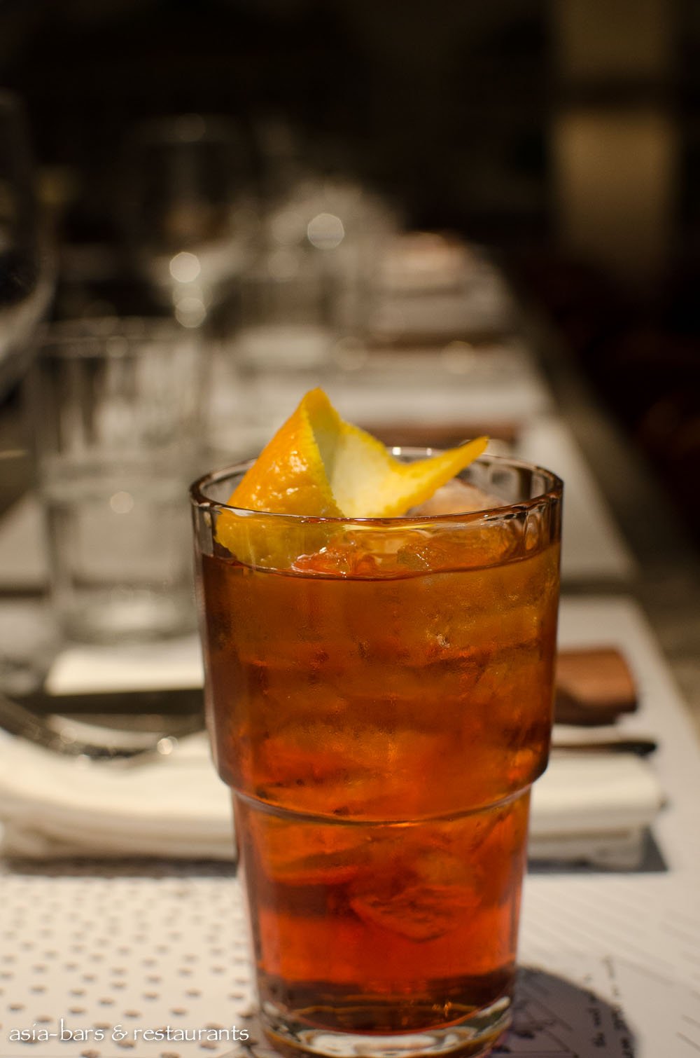 Le Boulevardier- Buffalo Trace Bourbon, Dolin Rouge Vermouth, Campari and orange bitters. A Negroni with a twist- using bourbon instead of gin.