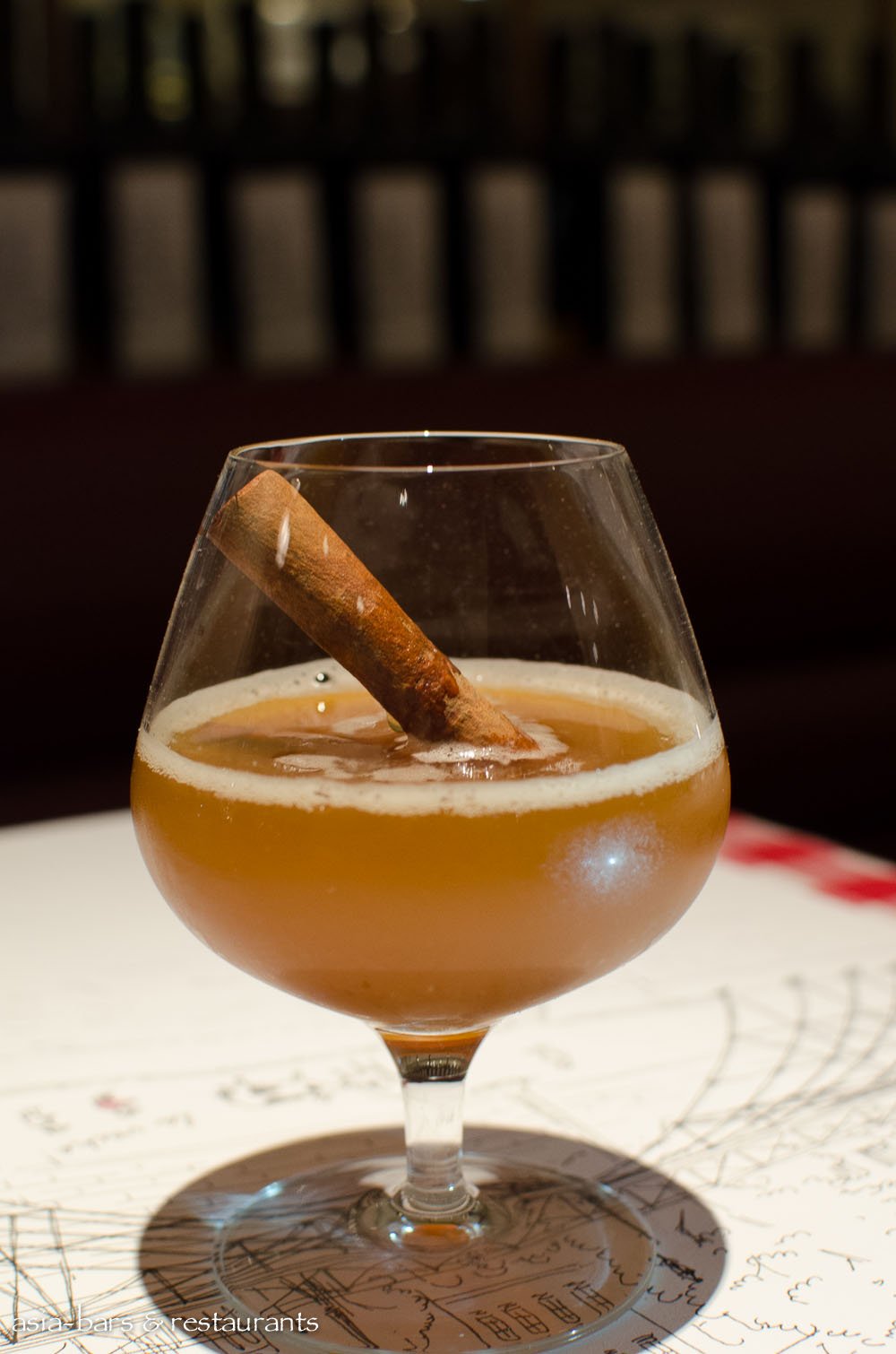 Tarte Tartin cocktail- Calvados VS, Goslings Gold Rum, lemon juice, cloudy apple juice, cinnamon syrup & Tiki bitters. Inspired by the classic French dessert.