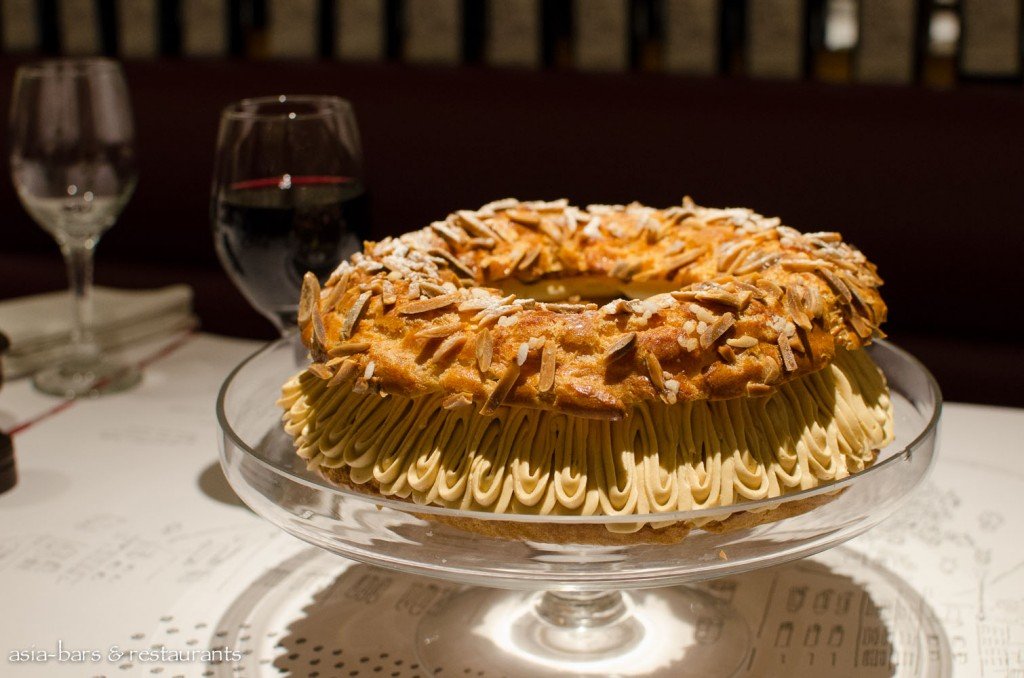 Dining at La Vache is pleasantly uncomplicated- the fixed price (HK$258) two course menu of green salad and steak frites is preceded by freshly baked baguettes for each table, and concluded with a choice of sublime French pastries from the dessert cart. Perfectly complementing the steak frites is a concisely curated wine list of several well-priced Bordeaux and Bourgogne wines, starting at HK$288 per bottle, plus a couple of champagne and white wine options. The privately bottled La Vache House Wine (HK$388 / bottle and HK$78 / glass) features an agreeable blend of Cinsault, Syrah, Mouvèdre and Cabernet-Sauvignon. Consistent with the French culinary theme, aperitifs and cocktails are inspired by classic French libations- including several versions of Kirs (typically wine and Creme de Cassis); classic Pastis; and cocktails such as The Martinez– London Dry Gin, Dolin Rouge Vermouth, and Marasquin and orange bitters; and to complement the desserts- Chartreuse Yellow and Chartreuse Original.
