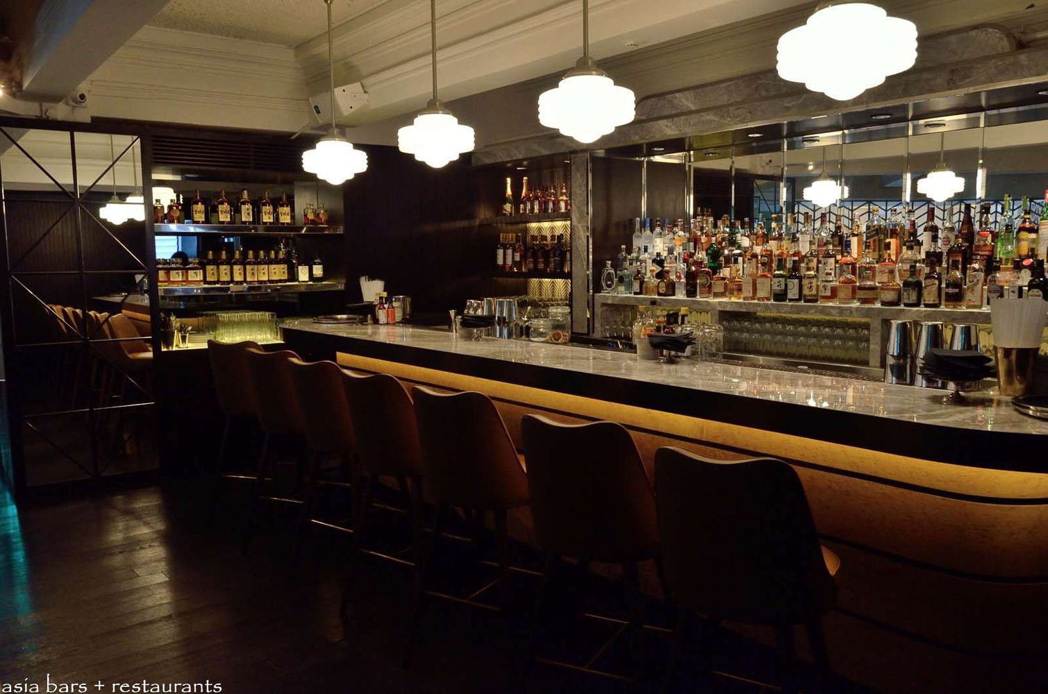 A masterful conceptualisation of timeless glamour and bold design, The Black Swan, which launched in July this year, is a welcome enhancement to the plethora of central Singapore dining and bar establishments that unimaginatively mimic safe and predictable concepts. Housed within the original banking chamber built in the 1930’s for a Chinese provincial bank, The Black Swan is conveniently located in the heart of the city’s financial district. Taking its cue from the distinctive Art Deco architectural style that evokes the glamour of a bygone era, The Black Swan has been exquisitely realised in the mold of a European grand café and bar- serving classic bistro cuisine all day, together with a sophisticated bar and lounge serving first class libations. The generously proportioned interior accommodates around 130 patrons in both a spacious dining section and separate bar area on the ground floor, with an intimate lounge located on the mezzanine level comfortably seating a further 60 guests.
