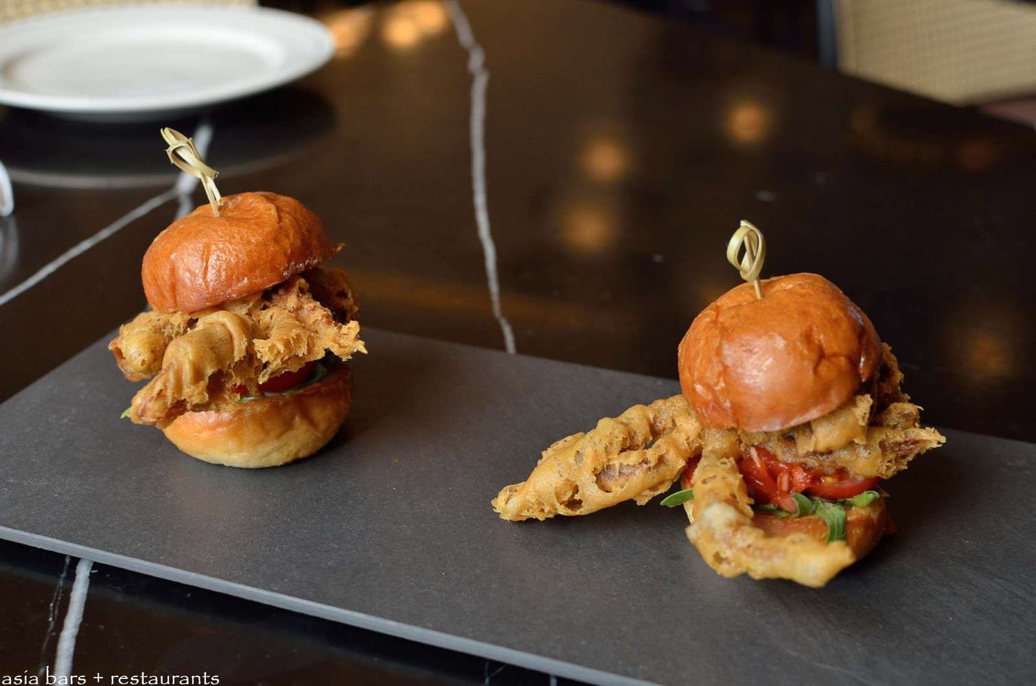 Soft-Shell Crab Sliders- crispy fried soft-shell crab, arugula, tomato. (Supper / Bar Snacks Menu)