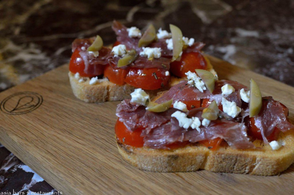 Cherry Tomato, Jamon Iberico, Feta, Green Olive Crostini