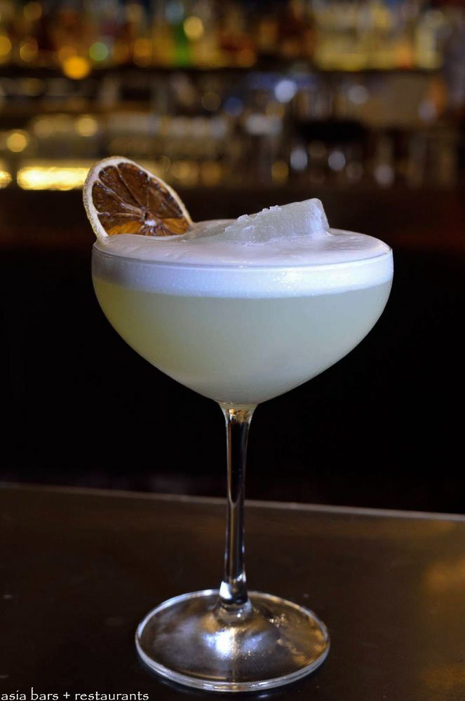 Good Night Peru- Peruvian Pisco infused with chamomile tea leaves and shaken with egg white.