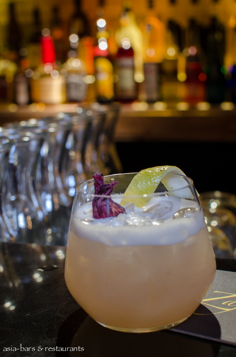 The Drunken Beauty– Bacardi white, Bacardi gold, lime, pineapple, rosellee, egg white.