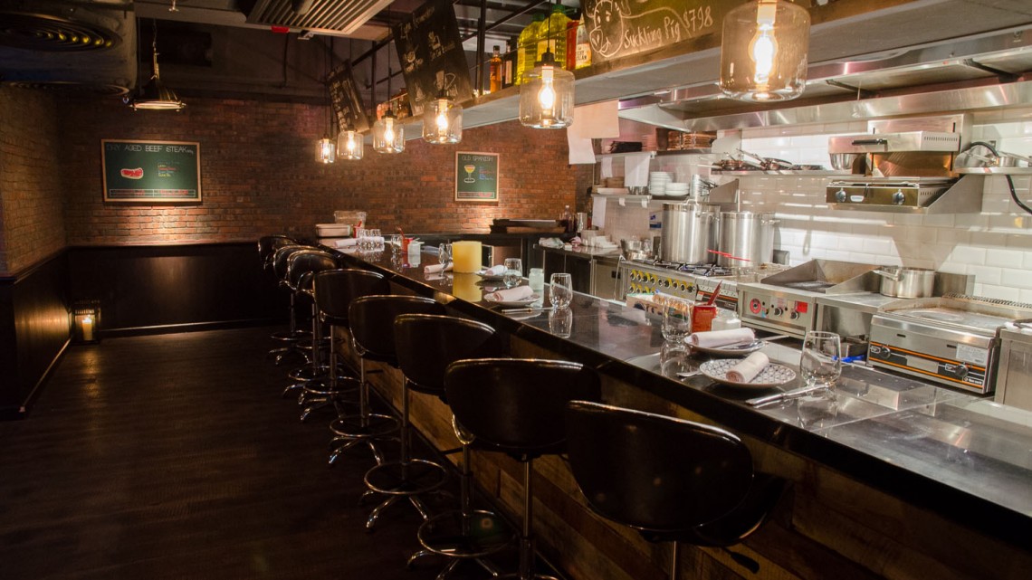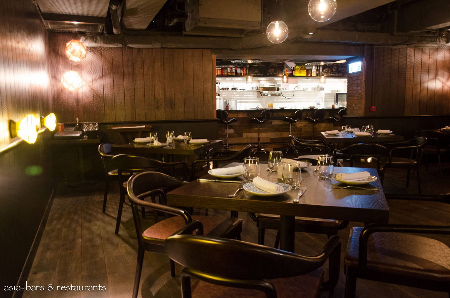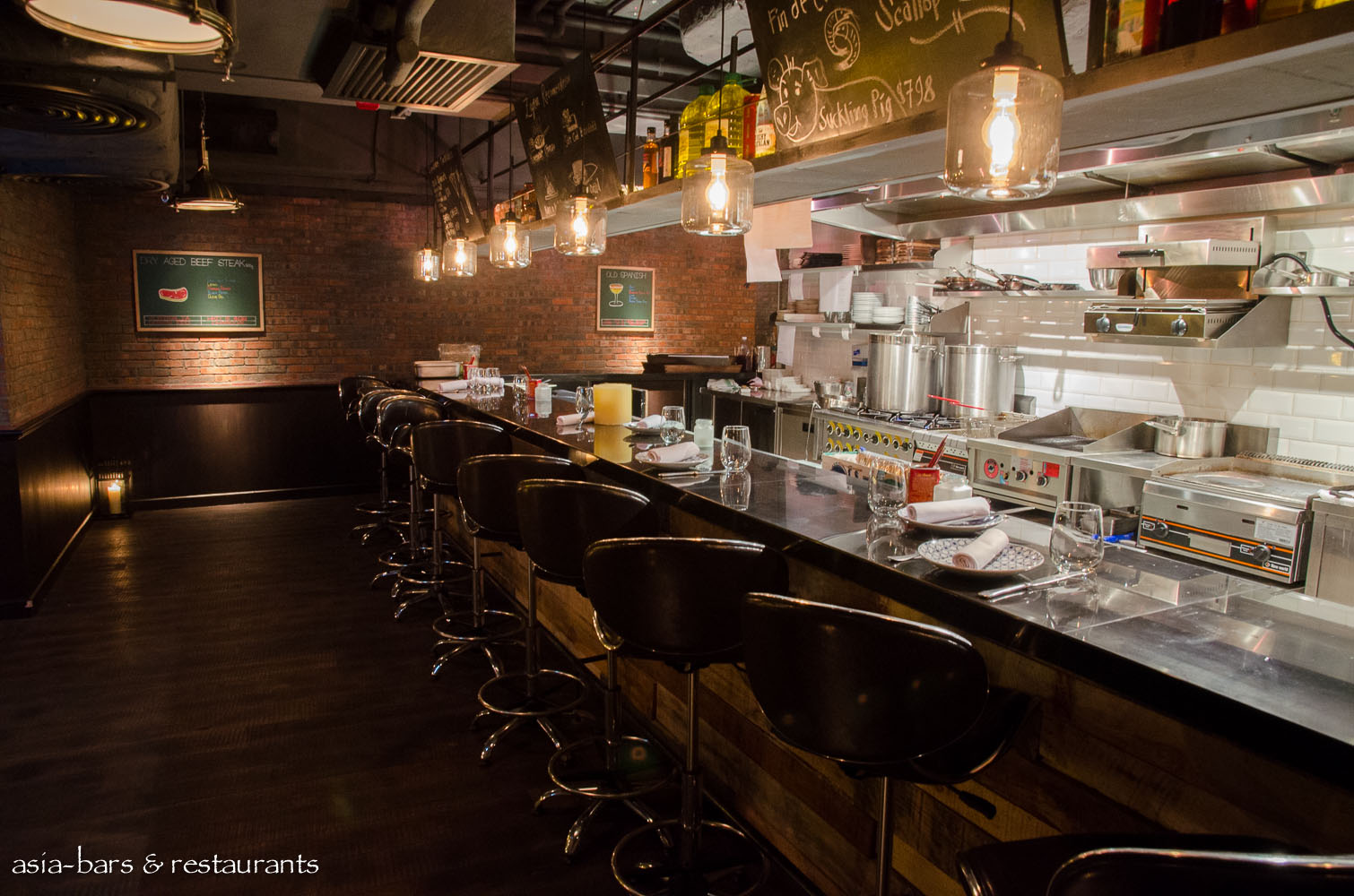 The open kitchen is fronted by a long bar counter allowing diners to interact with the Zafran chefs- in classic tapas bar fashion.