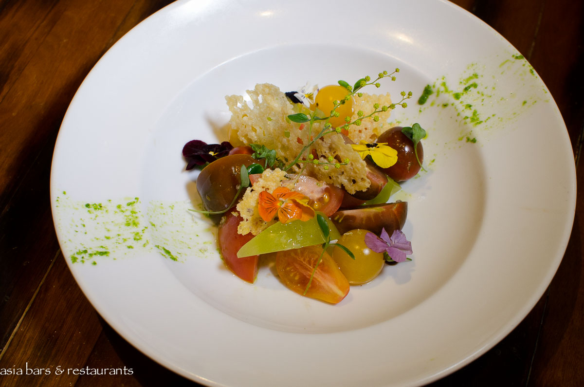 Heirloom Tomato Salad- parmesan crisps, basil oil, celery sea salt.