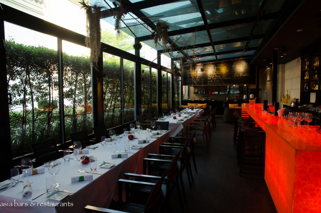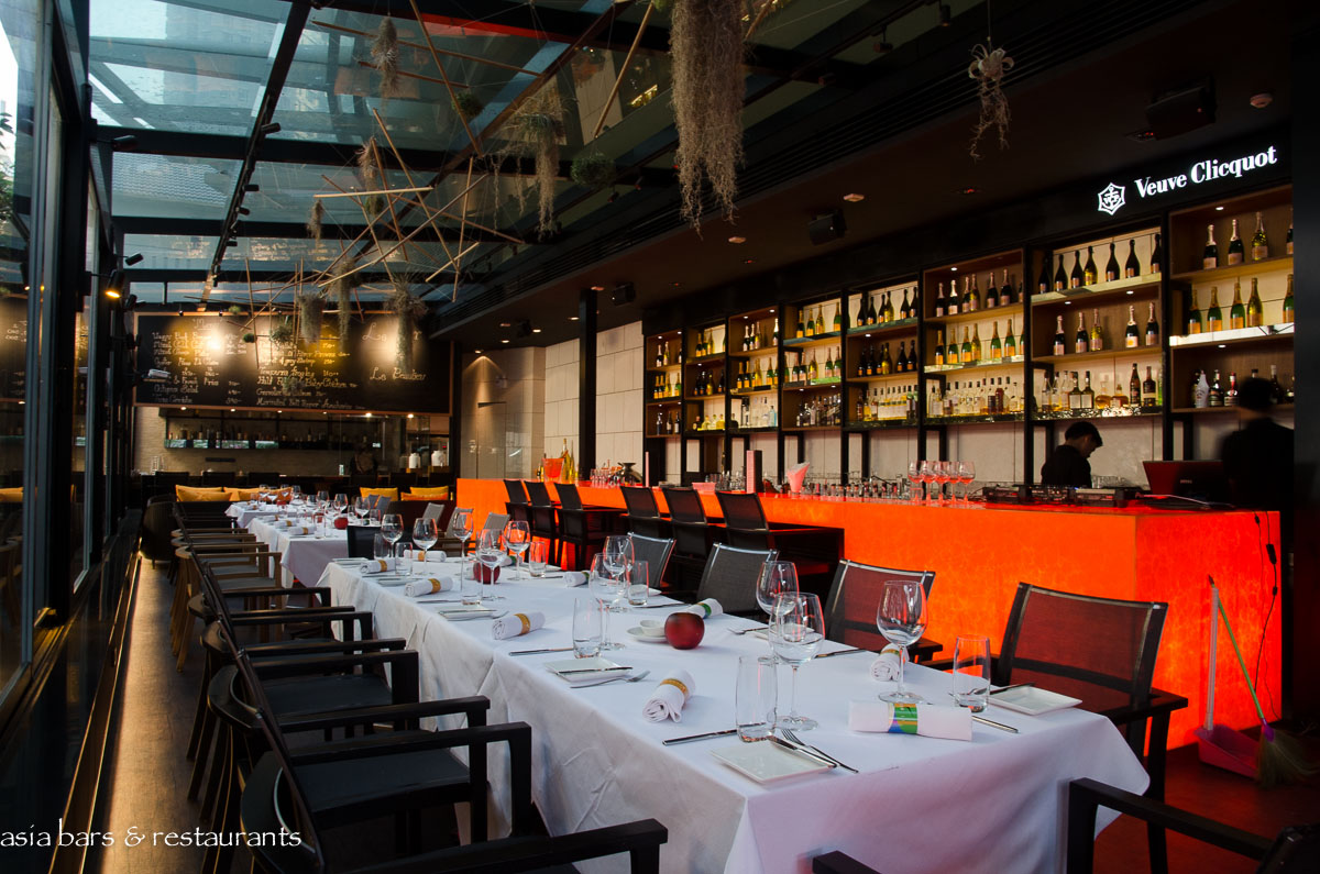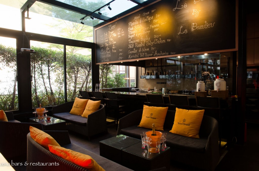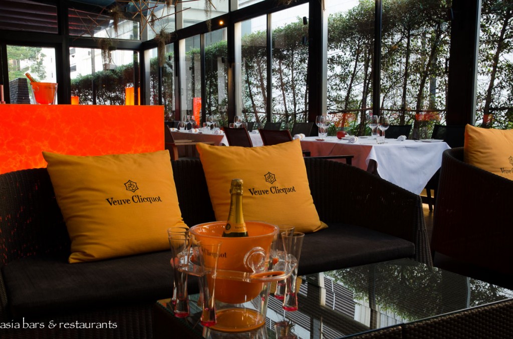 Launched in November 2013, Le Bar by Le Beaulieu introduced to Bangkok the refined concept of a champagne lounge and gastrobar. Bangkok’s renowned French fine dining institution- Le Beaulieu– have transformed an outdoor terrace area adjacent to the restaurant into a glamorous yet relaxed space for evening drinks and casual gourmet dining. With its glassed in, conservatory style indoor space, and casual outdoor zone at the entrance, Le Bar offers an upscale environment for social gatherings- either for drinks and tapas-style gastro bites, or as a more laid-back dining destination than the parent Le Beaulieu restaurant next door. The inspired partnership with the famed Veuve Clicquot champagne house has created Bangkok’s premier champagne gastrobar, pairing the sublime champagnes of Veuve Clicquot with the acclaimed French cuisine of Le Beaulieu’s celebrity Chef Hervé Frerard.