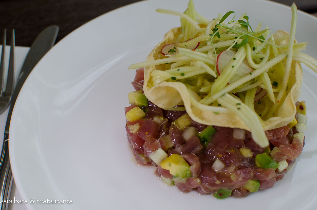 Tuna Tartare- avocado, pickled pineapple, papadum.