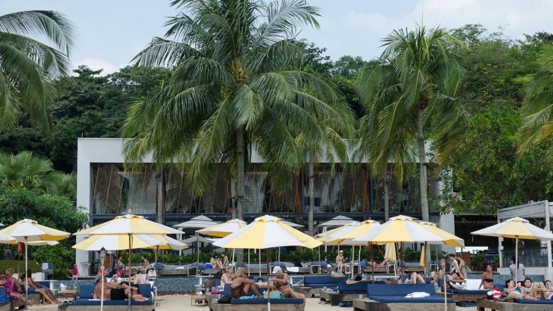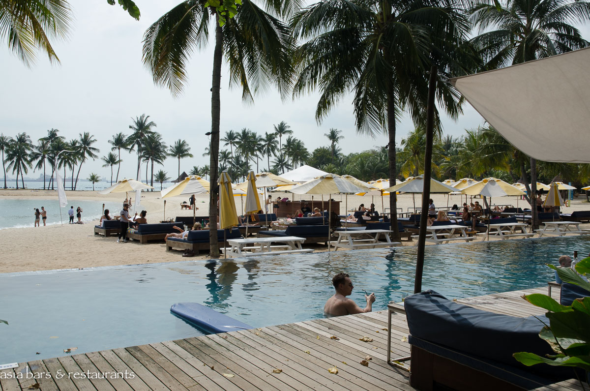 Popular Singapore beach club & restaurant with idyllic location on beachfront at Sentosa Island