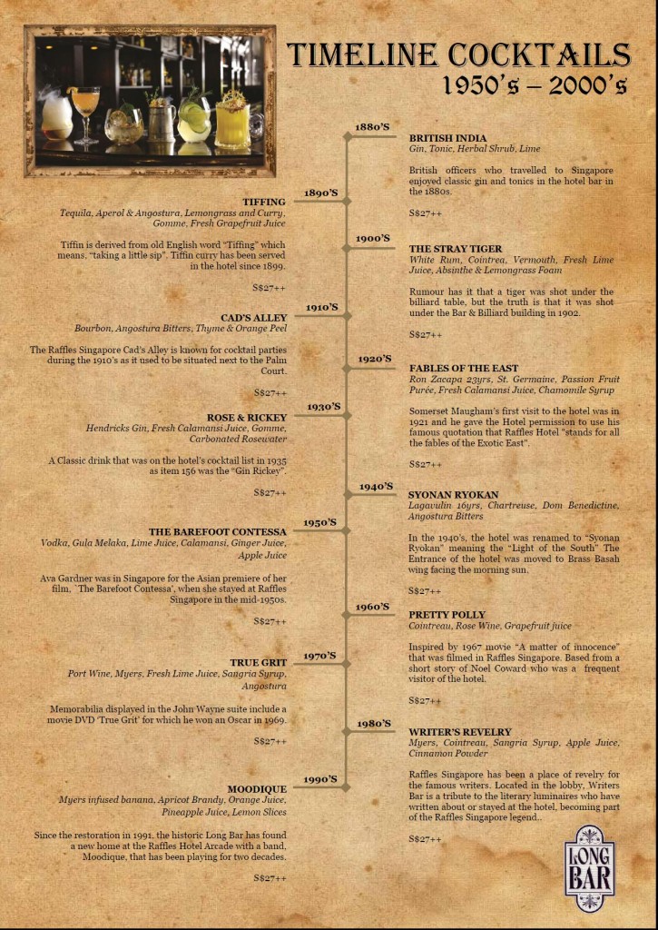 Raffles Timeline Cocktails – 1890’s – 2000’s