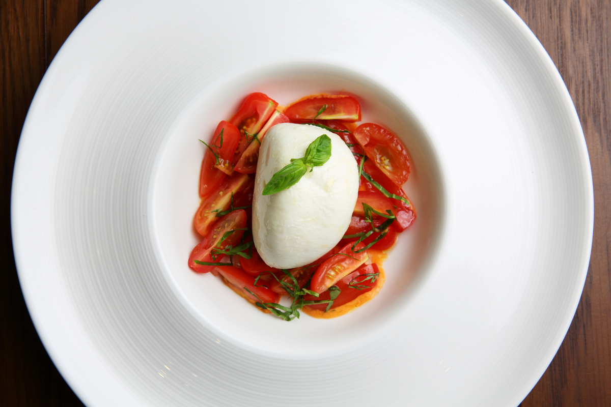 Burrata pomodorini datterini e basilico- Premium burrata with datterini tomatoes and basil