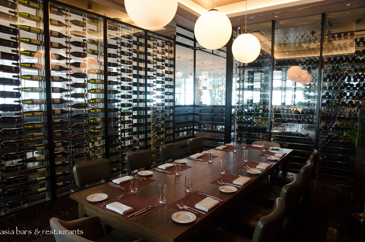 One of two private dining rooms- The Wine Room is ensconced within the glass-walled wine bottle display and adjoining walk-in cellar.