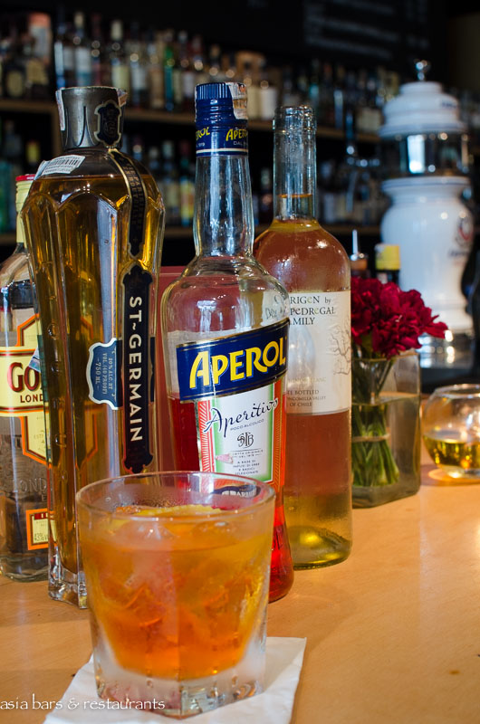 Headlining the bar program are the Cork & Screw “Ten Signature Wine Cocktails”– consummate mixology combines various wines with ingredients including spirits and fresh fruits to create some sublimely balanced drinks. Examples include Sage, Elderflower and Cucumber Sangria- sage leaves, elderflower syrup, dry gin, chardonnay, fresh lime juice, on top Sprite; and Scotch Blueberry Martini– Scotch Whiskey, orange liqueur, red wine, blueberries,lemon juice, sugar. The drinks list also offers selections of classic cocktails, premium spirits, and single malts.