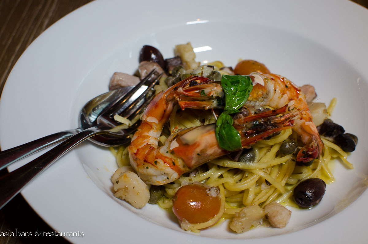 Under the direction of Tuscan-raised Executive Chef Mirko Lanini, the kitchen team serve up a broad selection of rustic provincial Italian fare with familiar dishes ranging from pastas and wood-fired pizzas to grilled and roasted meats, fish and poultry. Exemplifying the authentic cuisine are dishes such as Tagliolini Neri al Salmone– black ink tagliolini with salmon, cream sauce adn fresh coriander; Filetto di Manzo Boscaiola– pan roasted beef tenderloin with green asparagus, champignon mushroom and cream sauce; and Pizza Zola e Noli– walnut, mozzarella, gorgonzola and parmigiano.