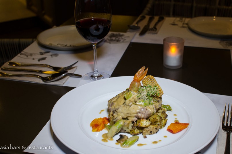 Diners can select between two settings – on the lower level diners are seated comfortably in a casual European garden setting, with verdant greenery planted throughout the space to provide a soothing, natural atmosphere, while on the upper level a stylish Italian ristorante dining area overlooks the bustling open kitchen. Also on the upper level, a spacious semi-private dining and lounge space caters to small groups and corporate events. The split level sunken lounge area that adjoins the substantial bar is centred around the large roaring fireplace that suffuses the lounge with a distinctly European feel.