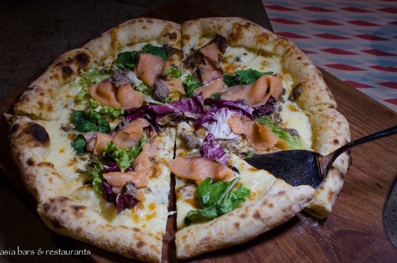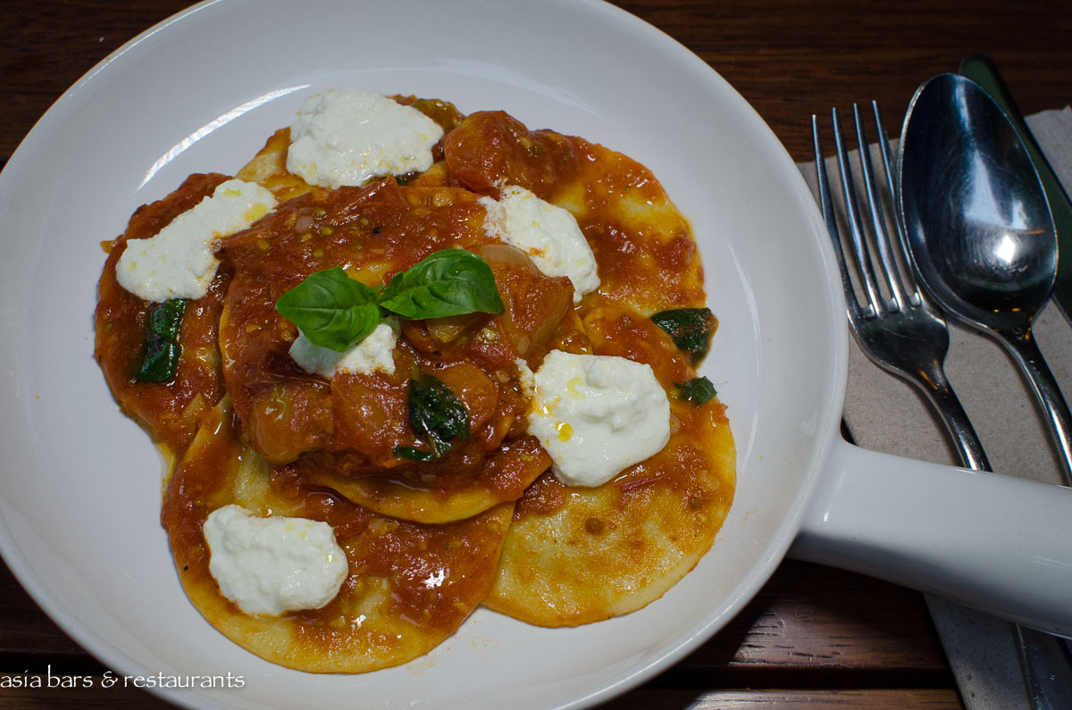 With a team of Italian chefs heading up the culinary team, the bulk of the recently updated menu is anchored on the rustic flavours of traditional Italian home style cooking. A gleaming open kitchen adjacent to the main restaurant entrance greets guests at arrival, contrasting with the substantial wood-fired pizza oven built into a wall of reclaimed timber beams. Neapolitan style pizzas are made with blended light dough for a thin crust with a soft centre. The classically structured menu includes selections of antipasti; salads and soups; home-made pasta dishes; and meat and fish. Notable new dishes include Cannelloni de Pesce– baked cannelloni pasta stuffed with assorted seafood and cream sauce; Filetto di Nacello– pan-seared codfish fillet with crispy potato, clams, olives and marjoram; and the Braciola di Vitello alla Milanese– pan-fried breaded veal chop Milanese style, with mashed potatoes.
