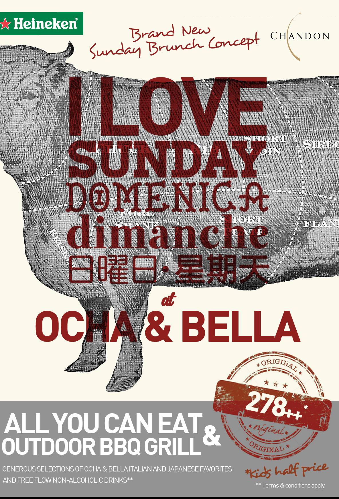 Popular promotions at Ocha & Bella include the recently Sunday Brunch featuring unlimited outdoor BBQ; and the newly launched Italian Apertivo– held on fourth Sunday each month from 6 pm- 8 pm enjoy drinks, canapes and live music. Check Ocha & Bella on Facebook and Twitter for updates.