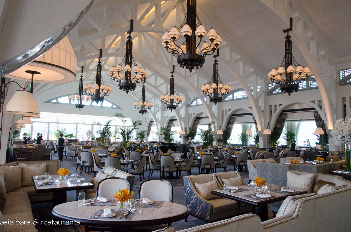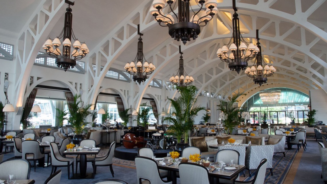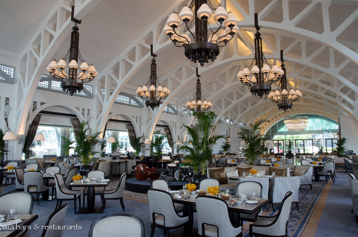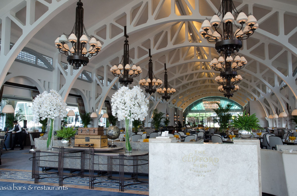 Conveniently located adjacent to both the main financial business district, and Marina Bay tourist attractions, The Clifford Pier is an appealing destination for all-day dining- serving an array of menus including Breakfast, Lunch, Afternoon Tea, Dinner and Supper & Cocktails. Live music from a jazz ensemble adds a glamorous element to the luxurious dining experience. The expansive main dining space accommodates around 200 guests, with a further 64 seats on the open-air terrace across the front of the pier. Reservations are recommended for peak periods- particularly weekday lunches and weekend dinners.
