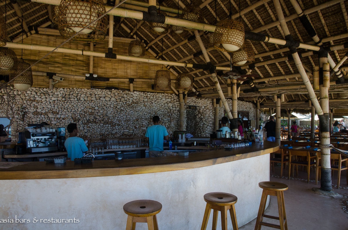 Beach passes for day visitors are attractively priced at only Rp250K -with children under 12 admitted free. A food and beverage credit of Rp150K is included with each pass- plus free WiFi, towels and unlimited use of the water activities- snorkeling, kayaks, and stand-up paddle boards (monthly tide charts are helpfully published on the Finn’s website). The restaurant is open for all-day dining, with cocktails and refreshing juices at the bar, and DJ sessions on Saturday and Sunday afternoons. Commensurate with its private, upscale status, guest numbers are limited to avoid over-crowding. Reservations are accepted for the restaurant only after 6 pm, and the Tree Top Bales with minimum spend of Rp500K per person. During other times restaurant seating is on a first come first served basis.