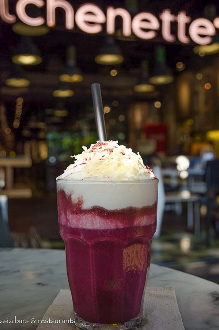 Kitchenette stands out with their wide variety of healthy and refreshing beverages- including juices and smoothies from the Juice Bar– and the luscious Frappes. Under the “Everything Wicked” category are some potent, oversize (500 ml) cocktails such as the Summer Tango– fresh mango & orange fruit with vodka, rum & gin. Other alcohol options include a couple of classic cocktails, well-priced wines and champagne, and bottled local and import beers.