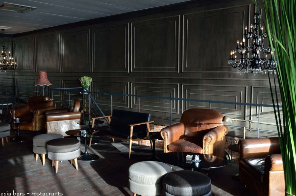 Mama San features a spacious open dining space on the ground level- furnished in a theme that references the 1920′s colonial period of Shanghai- with Oriental style white marble topped tables interspersed among dark timber tables and black chairs. Luxuriant tan leather Chesterfield sofas extend across one wall of the main room. On the upper mezzanine level the cocktail lounge has a style that evokes a laid-back gentlemen’s club with comfortable leather arm chairs and elegant chandeliers.