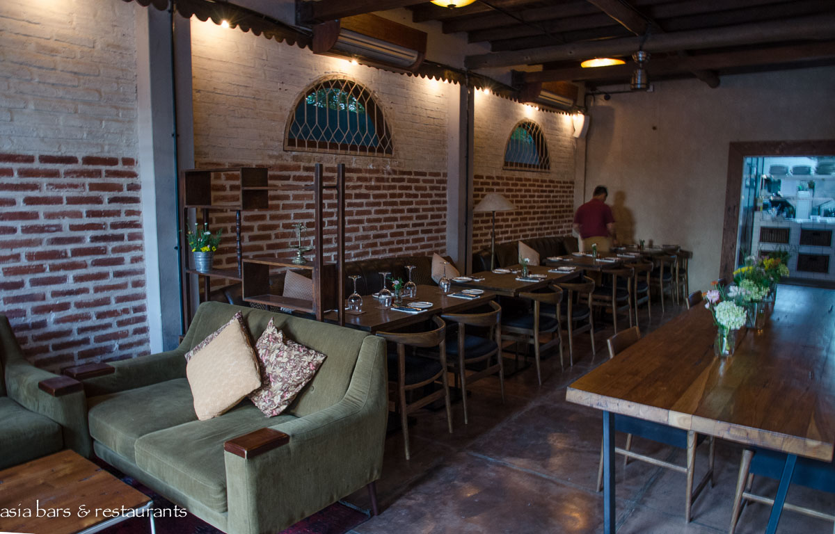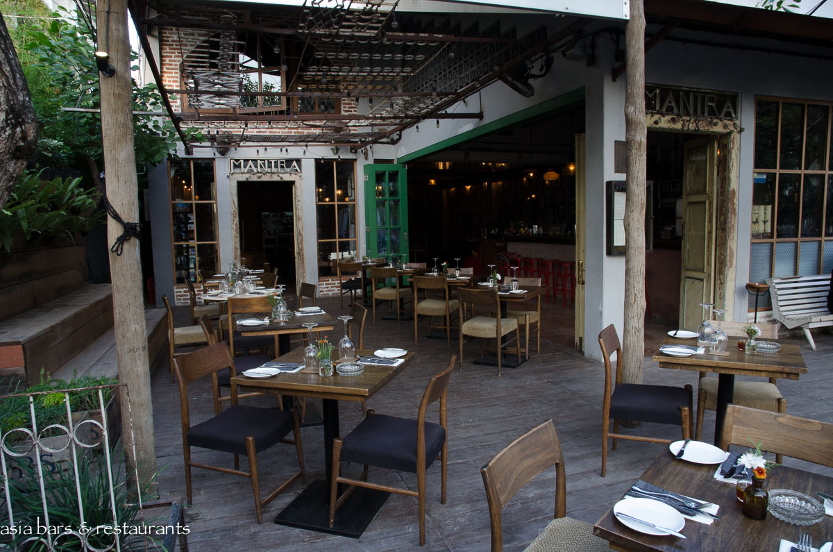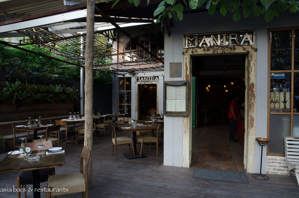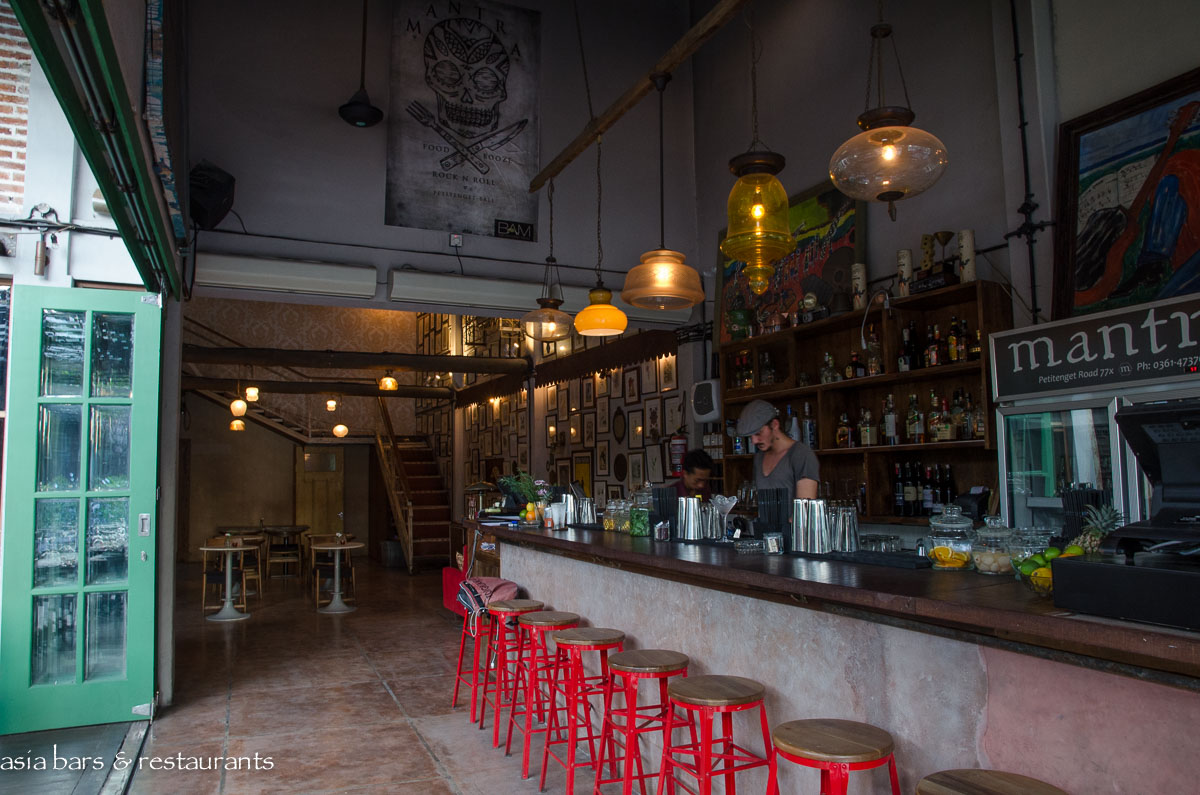 Mantra is housed in an open-fronted building on Jalan Petitenget Raya- one of Seminyak’s preeminent stretches for dining and nightlife outlets. Design follows a retro / rustic aesthetic with raw brickwork, recycled materials timbers, and classic teak dining chairs and tables. The spacious yet cozy layout features several sections that meld together seamlessly- a street front open-air garden terrace- the adjacent bar- and a generously proportioned inner room with further dining table settings, and soaring double height ceiling above a feature wall covered with a vast array of framed prints. In total Mantra can comfortably accommodate 80 diners across the various sections.