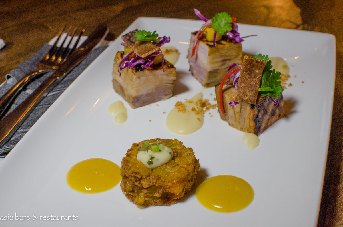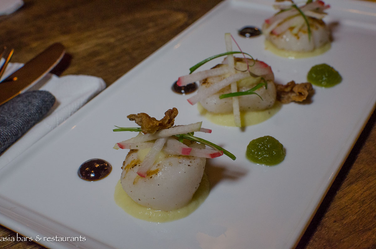 Mantra serves a lunch and dinner menu designed by chef Nick, featuring his meticulous renditions of contemporary international dishes that encompasses salads, fresh seafood and premium meats. Standout dishes include Octopus a la gallega, crispy potato, black aioli, paprika oil; Seared King Scallops, apple and ginger purée, rose apple & tamarind couli; and BBQ pork belly, apple and cassava purée, mango, macadamia, prawn fritter.