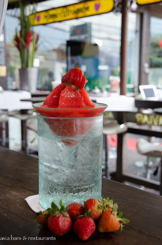 Combining indoor and outdoor terrace spaces, Red Carpet stands on a highly visible corner site. A predominantly bold red palette, combined with the brightly illuminated glass ceiling panels of the bar, make Red Carpet an eye-catching standout among the multitude of boutiques and restaurants lining Jalan Kayu Aya. Seating at high tables is provided in both the indoor and open-air sections in an open layout conducive to casual drinks at any time of the day or night. Although primarily a bar, Red Carpet serves selections of complimentary canapes during the evenings, plus other gourmet options designed especially to pair with champagnes, in particular include fresh Australian oysters served three ways.