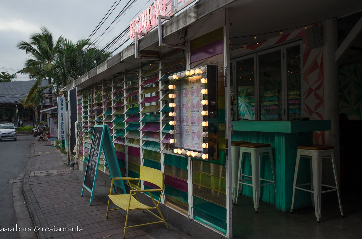 Captivating a loyal following since opening in 2010, the whimsically themed Sea Circus continues to delight its many fans with simple, well-executed food, a cheerful vibe, and an attractively priced drinks list. Located on a prime spot on the stretch of Seminyak’s fashionable Jalan Kayu Aya opposite The Samaya resort, this feel-good space is hard to miss with its facade that brings together a colorful circus-themed mural and a wall of colored glass louvres. Unequivocally an all day attraction, Sea Circus are open from early morning serving healthy breakfast dishes and gourmet coffee, through lunch and afternoon bites and drinks, to late in the evenings with dinner and cocktails.