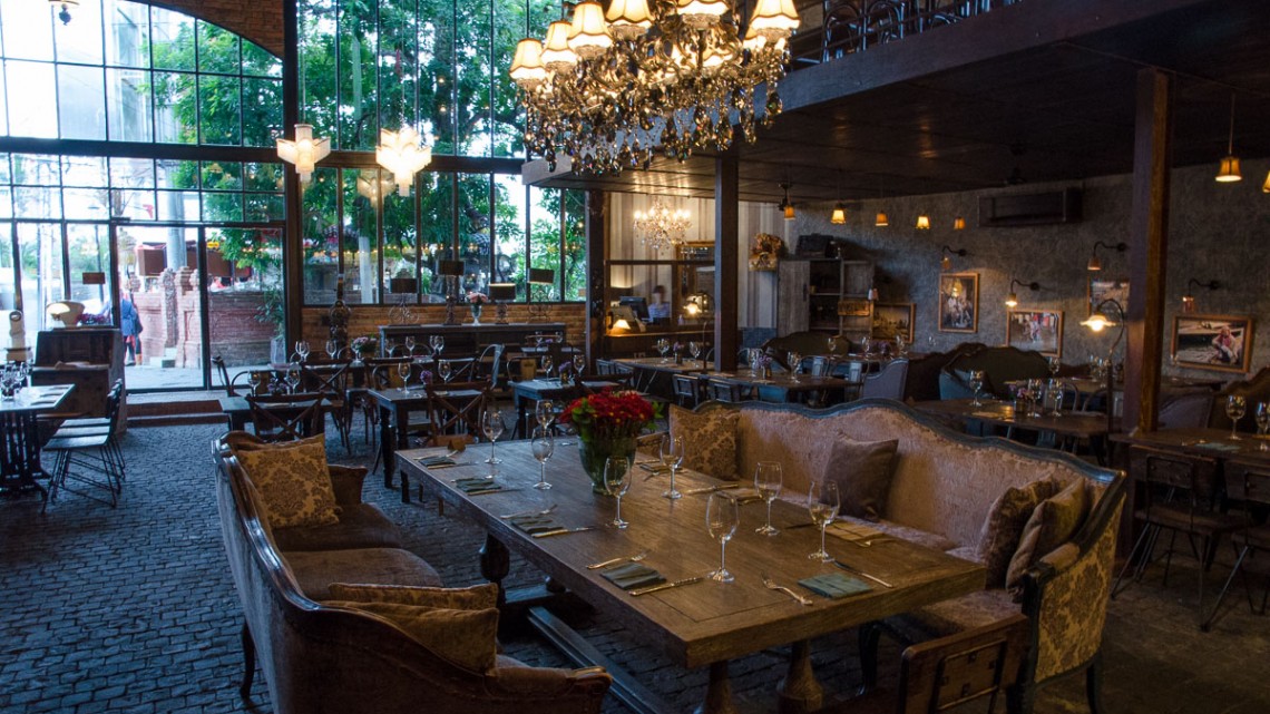 French brasserie-inspired dining within elegantly decorated vintage industrial loft setting