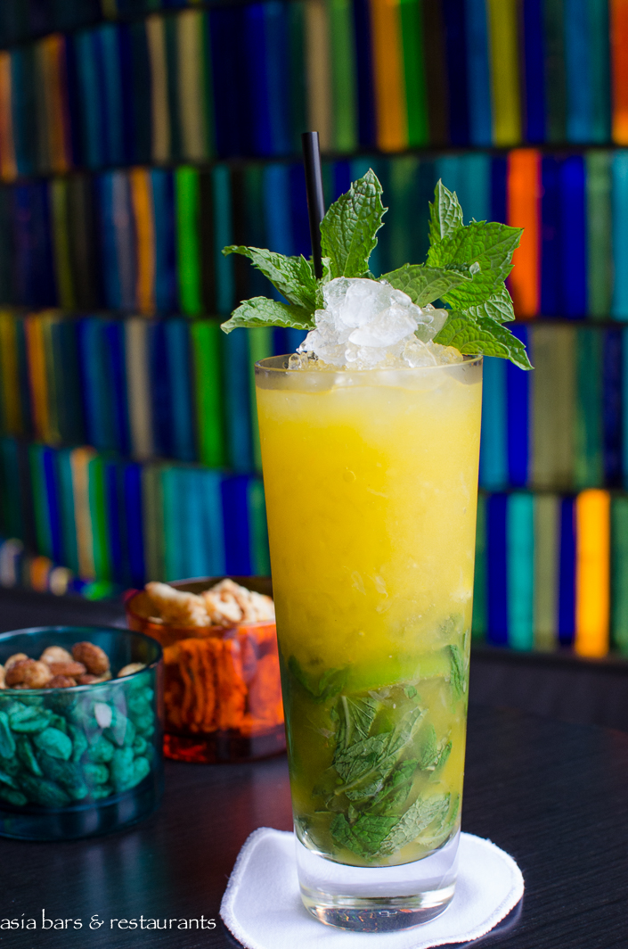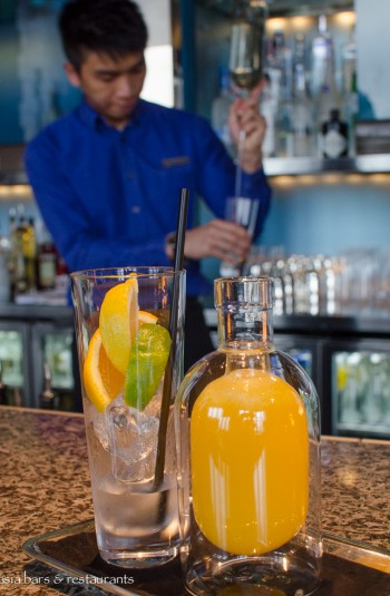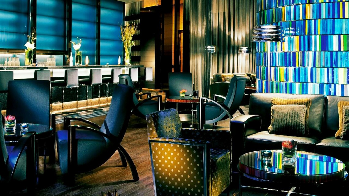 Consistent with the sleek, contemporary design that is the hallmark of Four Seasons, the decor of Blue Bar features a harmonious blend of luxurious furniture, plush carpets and soft furnishings, combined with bold modern design elements that embody the “blue” theme of the bar. Most prominently- a spectacular column-shaped installation crafted from multihued glass blocks and backlighted for dramatic effect in the evenings – presents a colourful visual impact at the heart of the room. The blue theme is further expressed with blue tinted glass panels behind the bar, and the blue outfits of the bartenders.