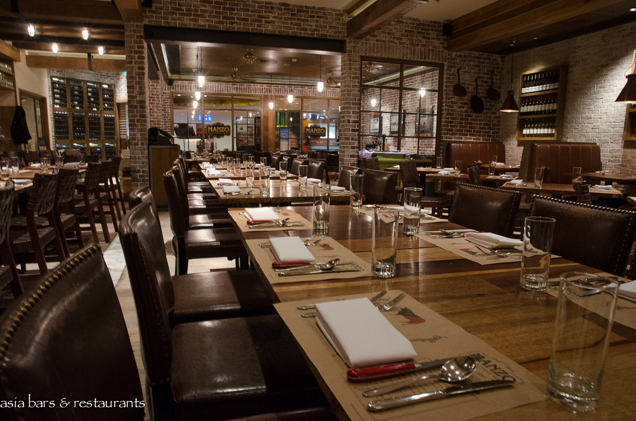 Named after the Italian word for “beef”, Manzo in Hong Kong offers an impressive steak-centric dining experience at approachable prices. Conceived in the mold of the traditional steak houses of Italy, Manzo delivers an authentic menu of rustic north Italian cuisine in a handsome dining space set within the mega-popular Times Square retail and lifestyle mall, at the heart of Hong Kong’s shopping epicentre – Causeway Bay. Manzo was launched in 2011 by the highly regarded local restaurant group Dining Concepts, part of a portfolio that includes notable steak restaurants such Bistecca, BLT Steak and Craft Steak. Open daily for both lunch and dinner, Manzo attracts a steady crowd of diners with its authentic Italian steak cuisine, excellent wine cellar of mostly Italian labels, and rustic yet warm decor with a relaxed dining atmosphere.