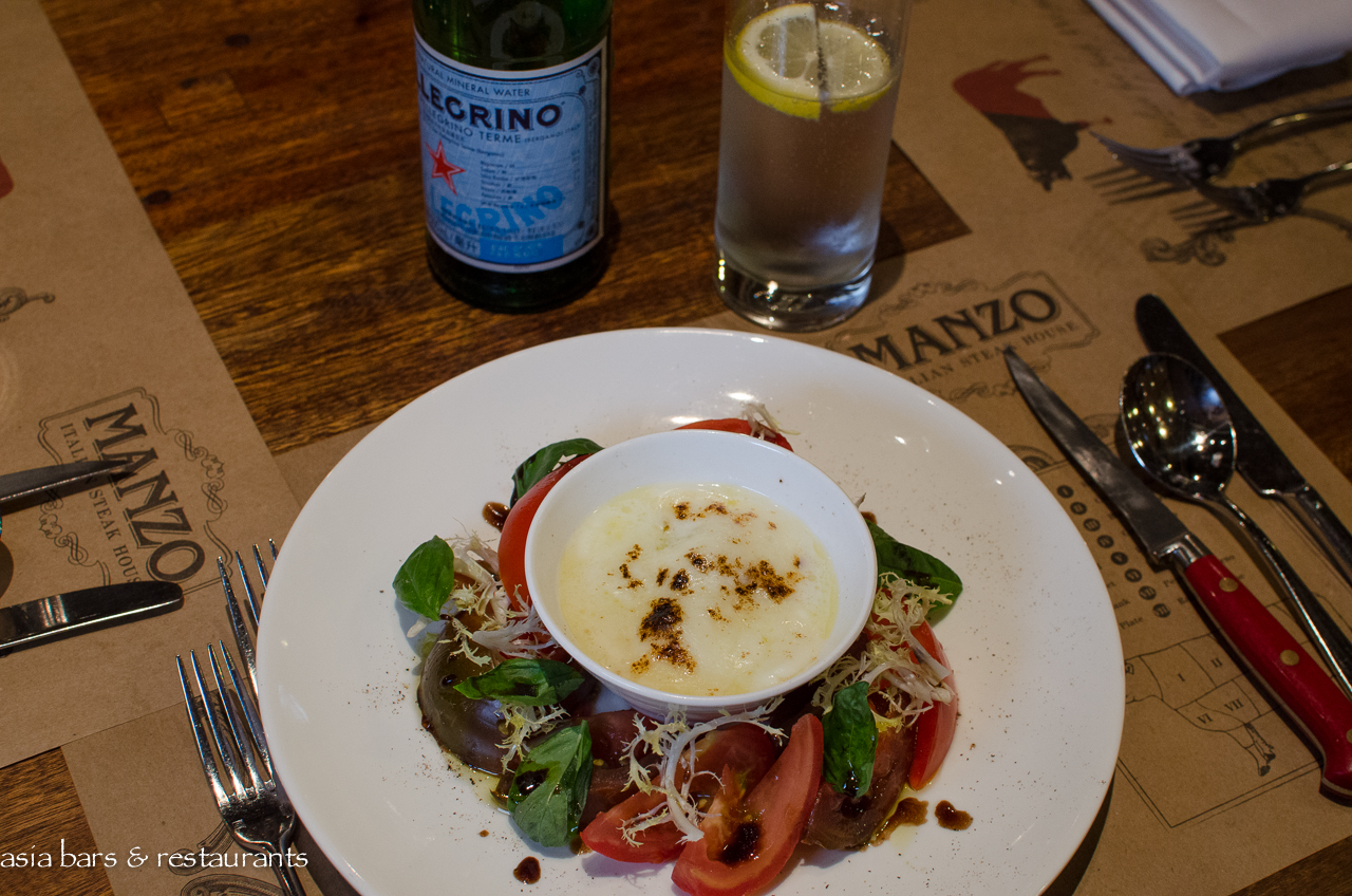 Adding authenticity to its “farm to table” meat program, Manzo have contracted a specific cattle ranch to raise red and black Angus cattle exclusively for the restaurant, ensuring quality, sustainability and certified origin. Manzo additionally sources prime cuts of USDA and Australian beef – variously aged. Cooked very simply in the traditional Italian fashion, steaks are served with black truffle butter and jus, with optional sides selected from the menu. Signature cuts include the famous Tuscan steak- Fiorentina – a large flavourful T-bone of 35 oz that is best shared by two or three people. In addition to the headline steaks, the menu provides selections of antipasto, pasta, insalate, and classic Italian desserts. And the list of “Butcher’s Specialties” includes Roasted Chicken with Foie Gras; and Pan-seared Hokkaido Scallops. A daily Set Lunch menu offers a range of excellent value combinations, with the weekend Brunch Menu equally attractive.