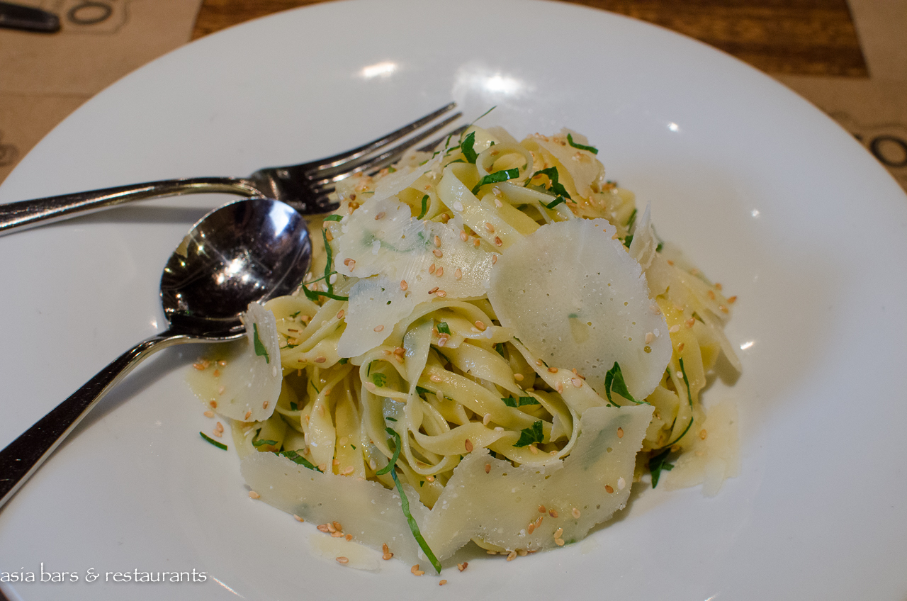 Linguini, Lazy Winter, pine nuts, parmesan, garlic, olive oil.
