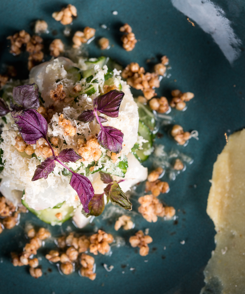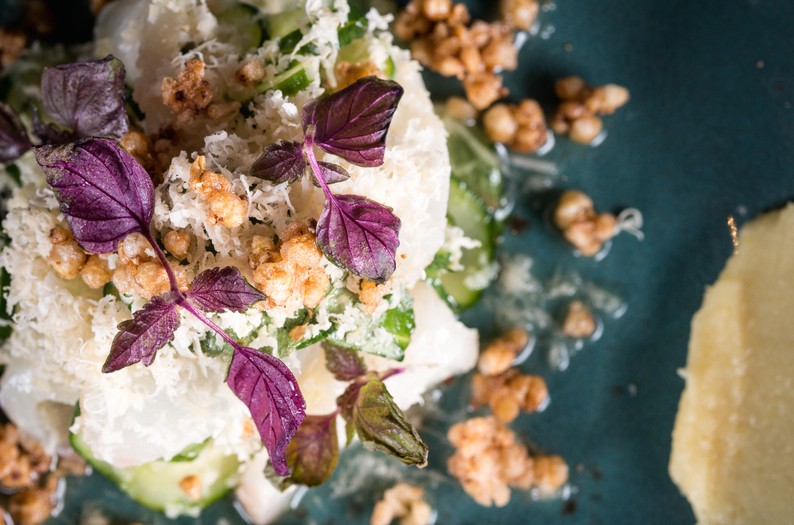 The inventive menu of revamped Chinese dishes created by Yu is assembled under headings such as To Start; Raw; Vegetables; Roast Meats; and Not A Small Plate. Dishes that exemplify his unconventional approach include Mom’s “mostly cabbage, a little bit of pork” dumplings, sacha soy dressing; DIY pork San Choi Bao, cucumber kimchi, chili bean paste, garlic stem, mixed herbs; and Steamed local black kingfish, fennel and radish salad, pickled chili, ginger white soy dressing. While at the bar, Asian inflected drinks are the specialty, created from ingredients like Oolong tea-infused vodka, shochu, and green tea.